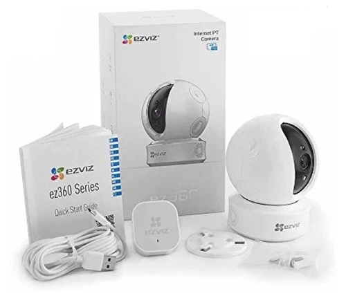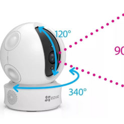 Cámara IP Ezviz modelo CS-CV246-B0-1C1WFR. Resolución 720p a 25 cuadros por segundo. WiFi. Lente: 4mm. Funciones especiales: Función de rotación vertical y horizontal; Seguimiento inteligente. IR hasta 10 metros. Audio bidireccional. Memoria SD. Puerto Ethernet RJ45. Alimentación: DC 5V (incluida). Dimensiones: 87.7 mm x87.7 mm x112.7 mm. Peso: 256 g.