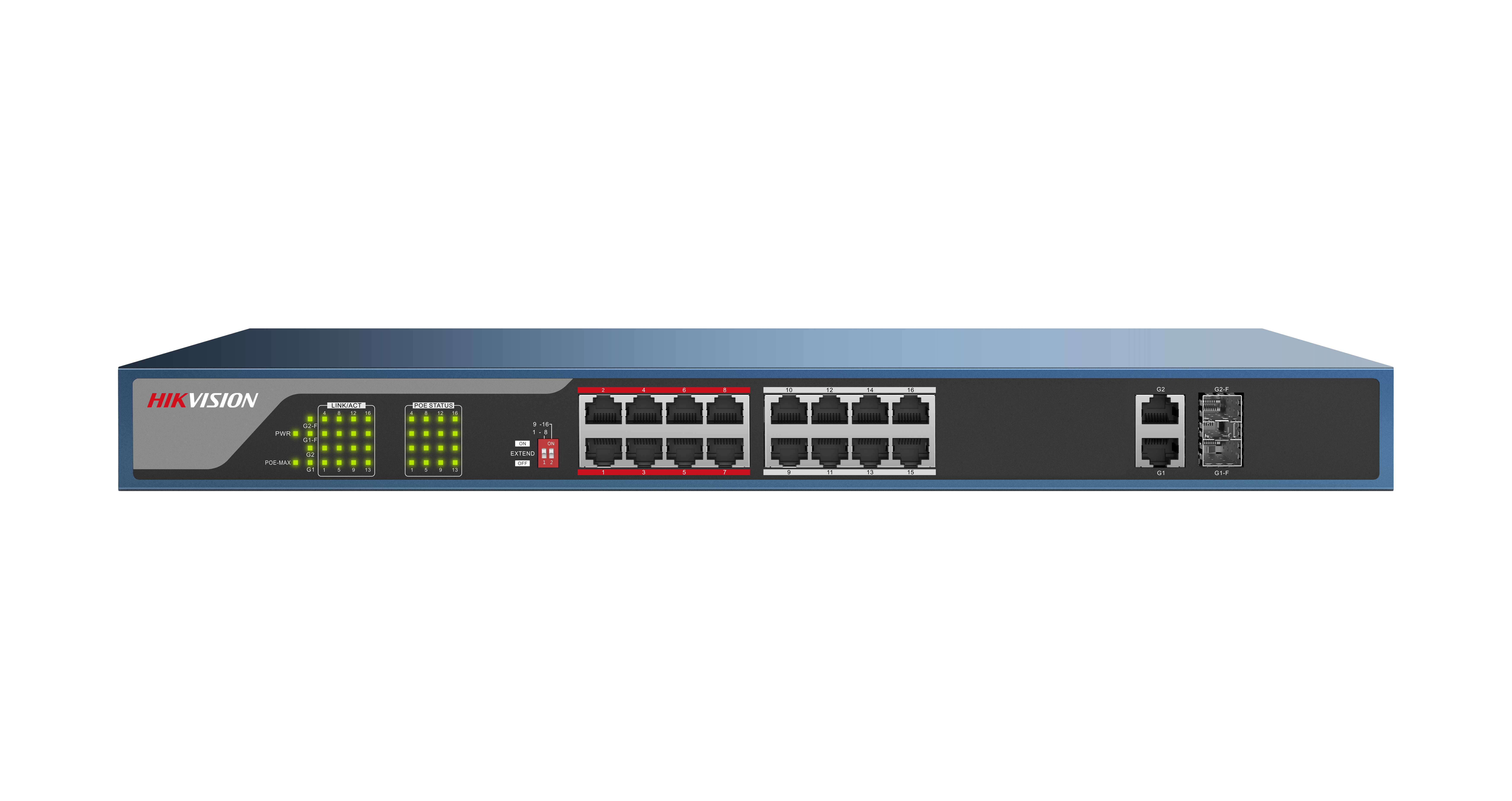 Switch PoE de 16 puertos (RJ-45) 10/100 Mbps, más 1 puerto RJ45 Gbit y un puerto Gbit óptico. No gestionado. 16 puertos PoE/PoE+ (802.3af, 802.3at). Modo extendido disponible para alcanzar una transmisión por cable de hasta 250 metros. PoE 135W total máx., proporciona hasta 30W por puerto. Optimizacion de buffer para garantizar la transmisión de video. Protección de sobretensión. Alimentación: 100-240V AC, 50/60Hz, Consumo 150W. Rango de temperatura: 0º-40ºC.
